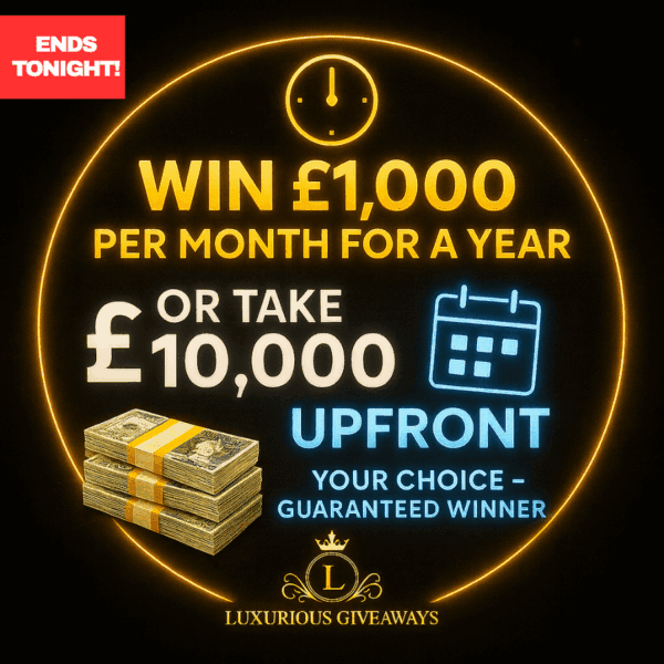 The live draw will take place on the Luxurious giveaways ltd Facebook page using Google’s random number generator to select the winning ticket number from all Entrants.